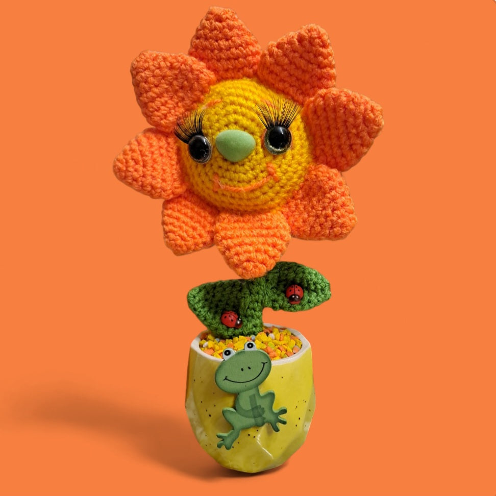 Fröhliche Häkelblume im Mini-Topf 🌸