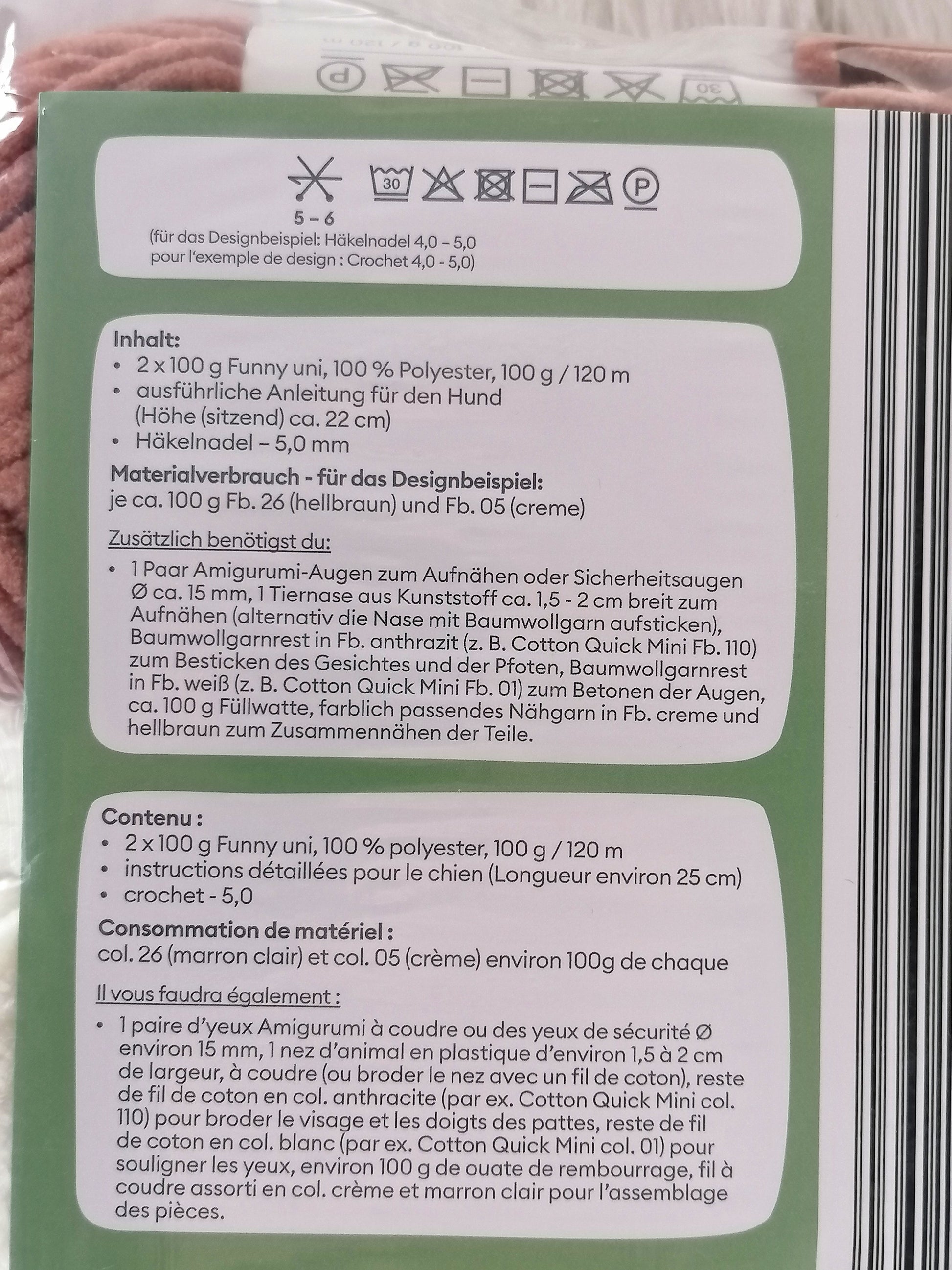 Hund Benni ist ein Häkelprojekt, das beim Arbeiten Freude bereitet und dessen Ergebnis ein richtig schön kuscheliges sein wird. Laut Hersteller hat der sitzende Hund eine Höhe von etwa 22 cm. Auch während des Häkelns vermittelt das weiche Chenille-Garn ein angenehmes Flauschgefühl und lässt dich sofort erahnen, wie plüschig dein fertiger Hund aussehen wird.