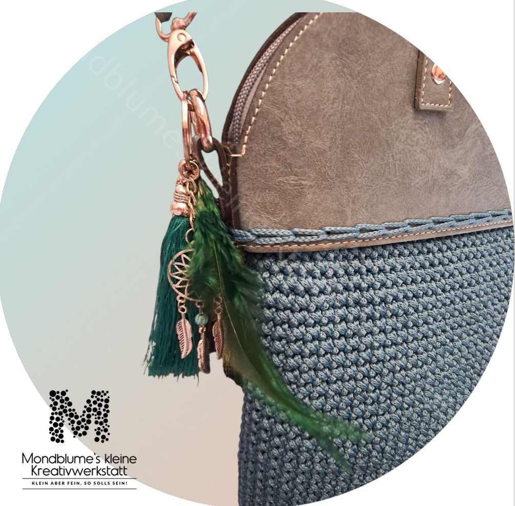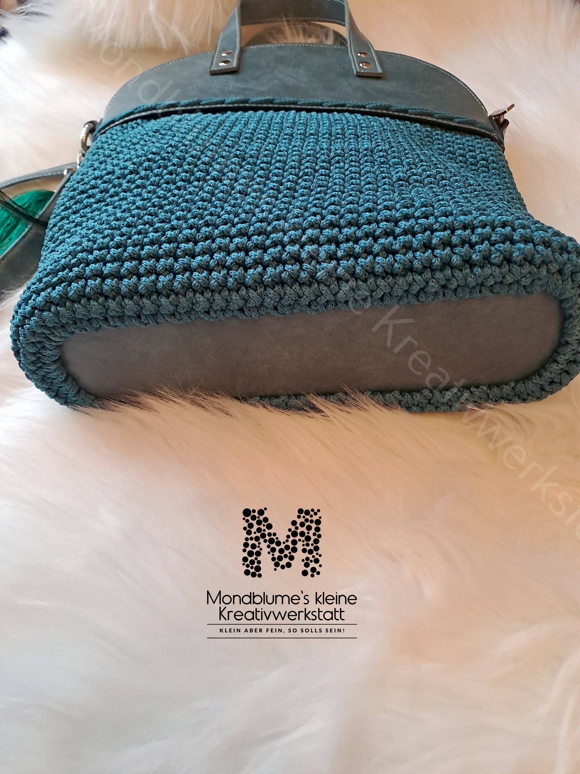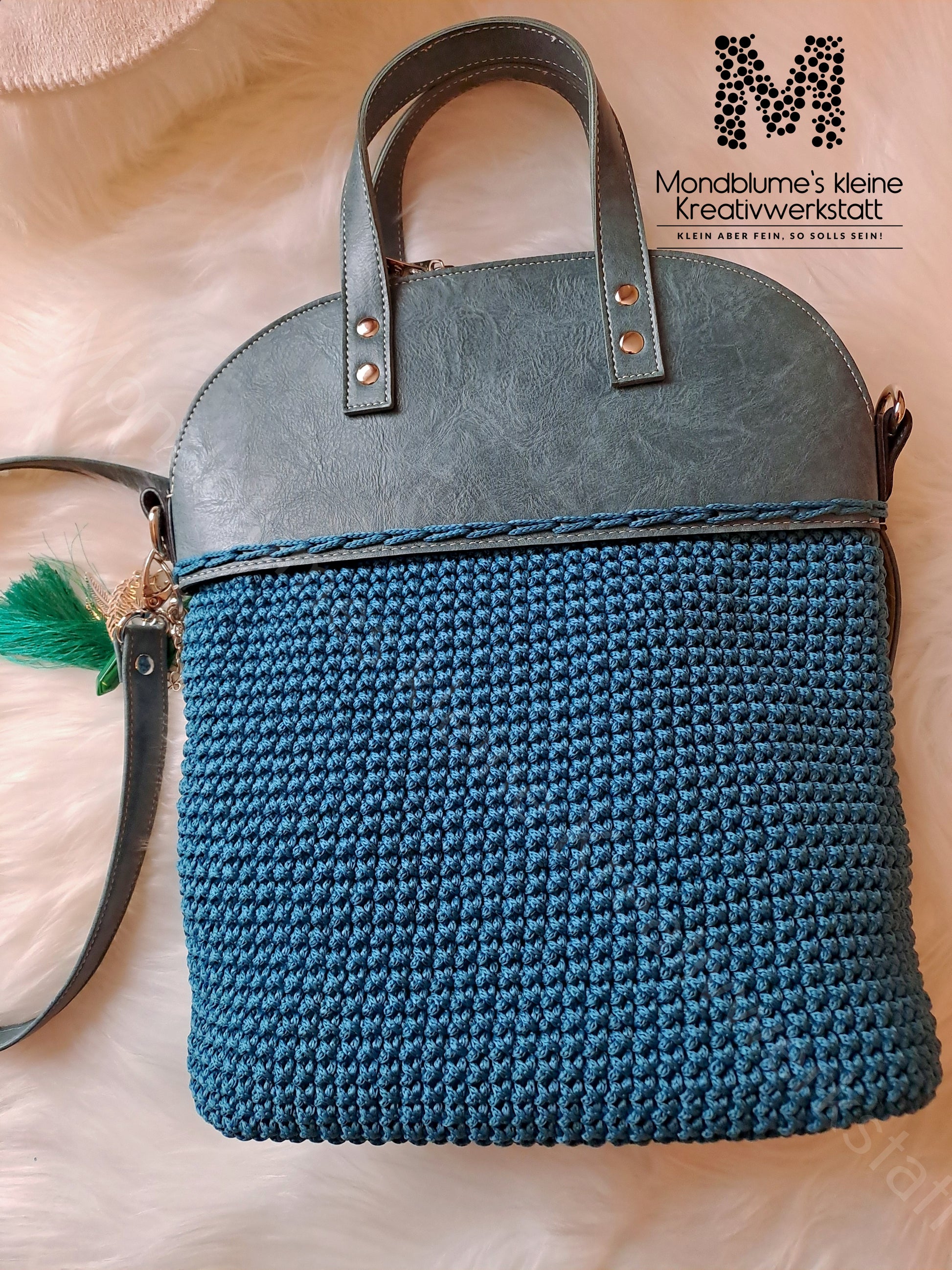 Ein besonderes Stück für besondere Momente: Diese Tasche vereint feine Häkelarbeit mit edlen Elementen in Lederoptik. Ihn zartes Petrol bringt Leichtigkeit und Eleganz in jedes Outfit, ob zum Stadtbummel, ins Café oder als stilvoller Begleiter im Alltag.